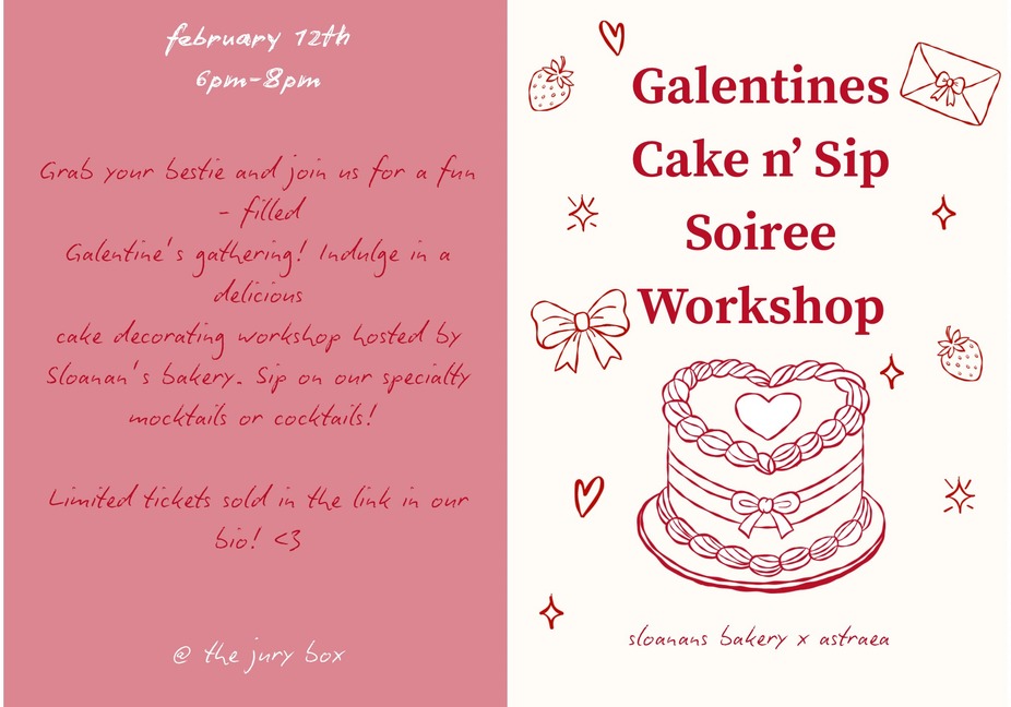 Grab you besties and join us for a fun - filled Galentine's cake decorating class at the Jury Box!